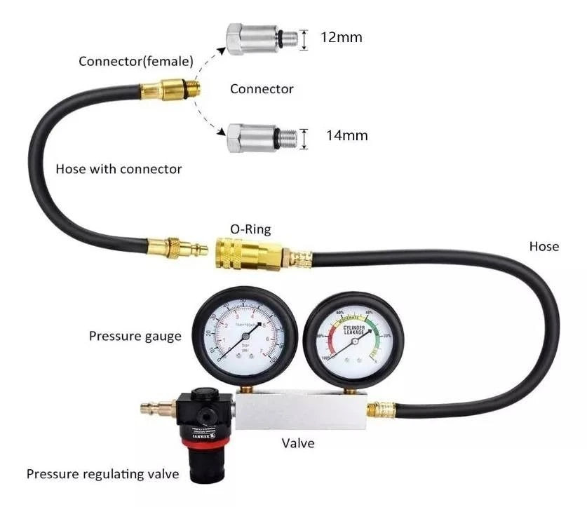 1 unidad de detección de fugas de doble calibre (adecuada para usar en cualquier motor de gasolina con bujías de 10mm,12mm o 14mm)