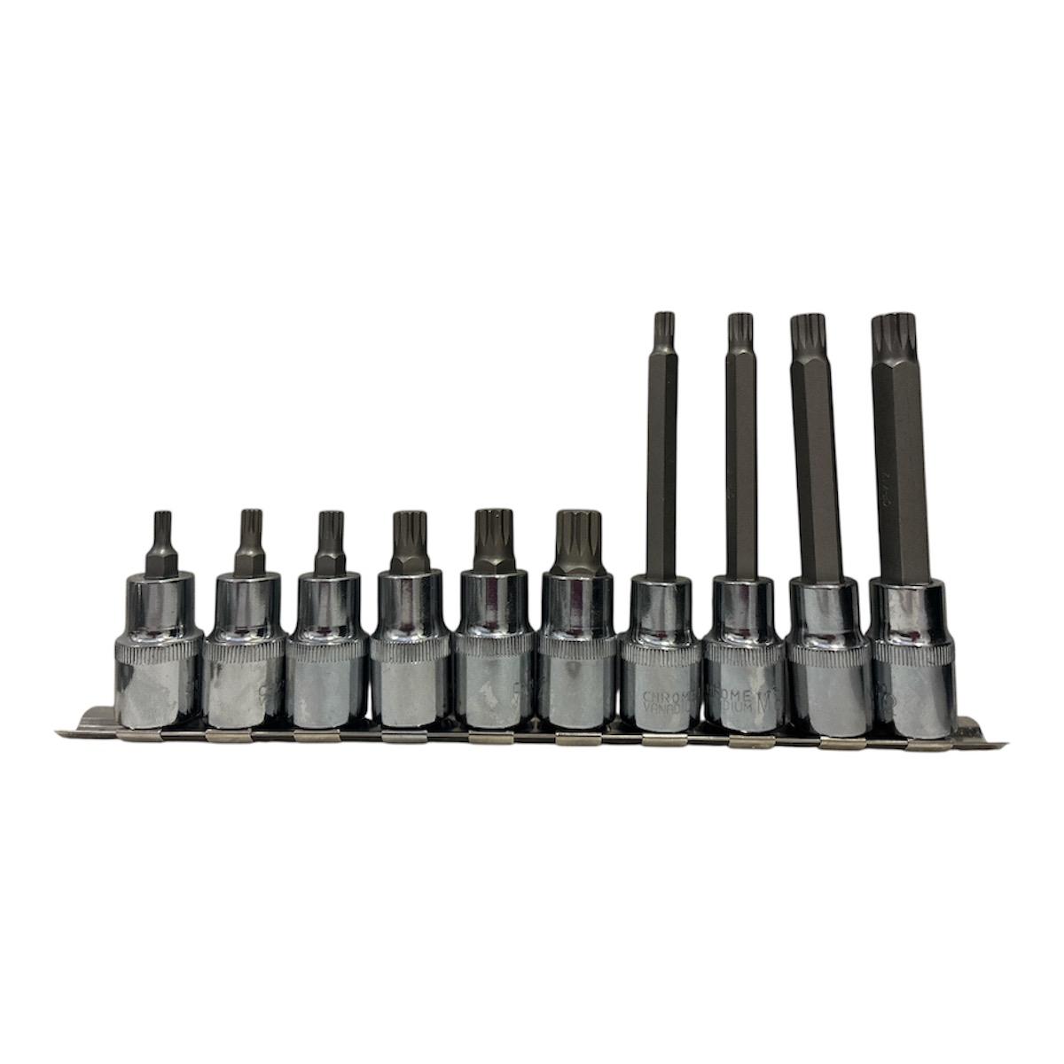 Juego de puntas con entrada de 1/2 para armar y desarmar tornillería XZN o triple square, estos son utilizados en algunos autos Europeos como Volkswagen, Audi, BMW, Mercedes.