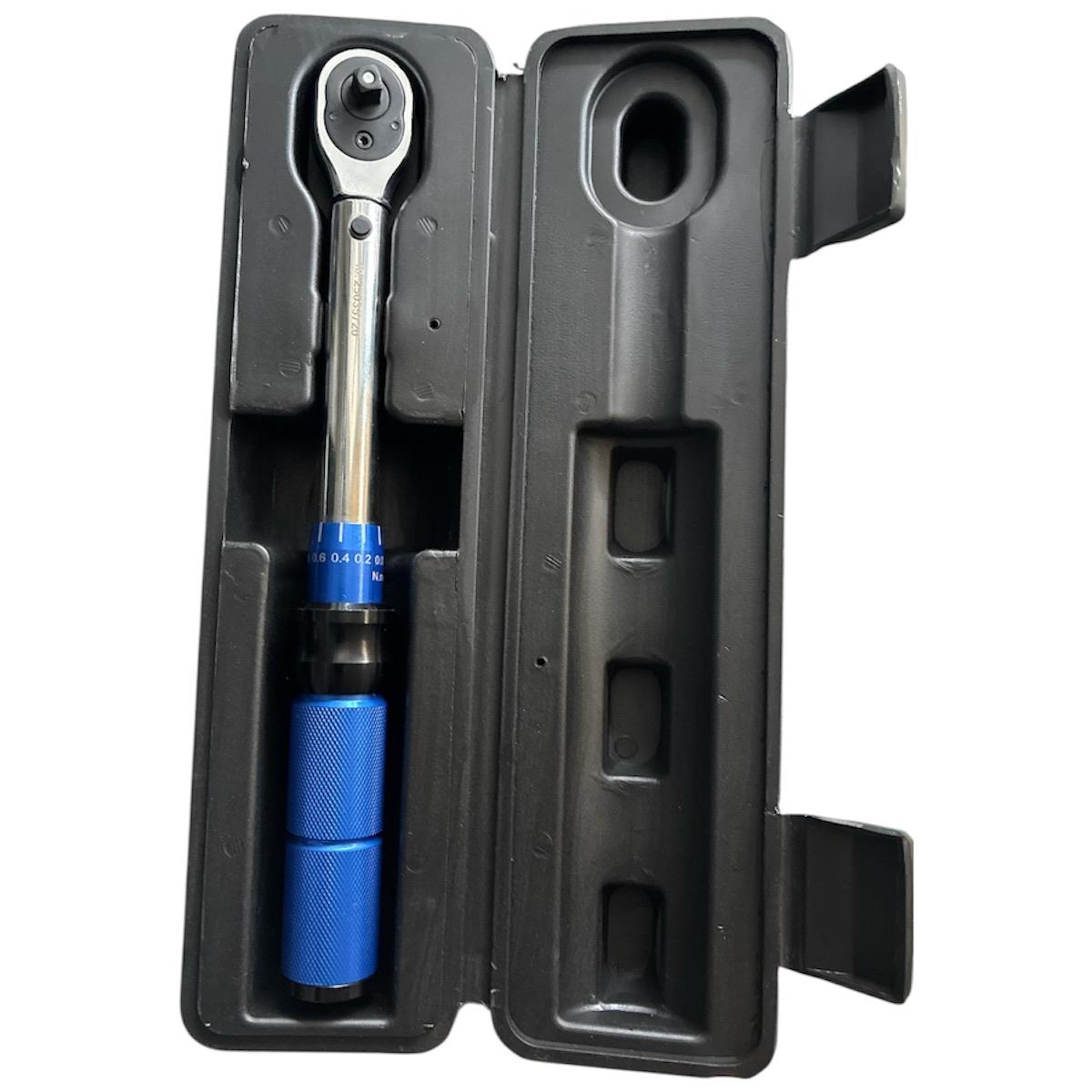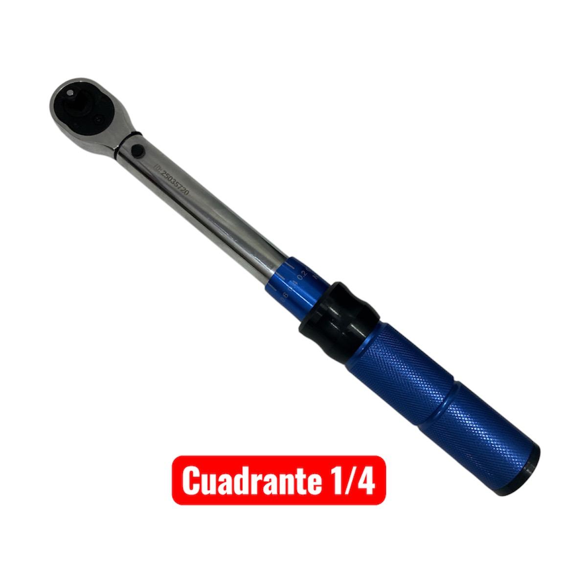 Torquímetro con cuadrante de 1/4 con torque de 5 a 25 Newton Metros, viene en estuche plástico para su almacenamiento. Largo 25 centímetros.
